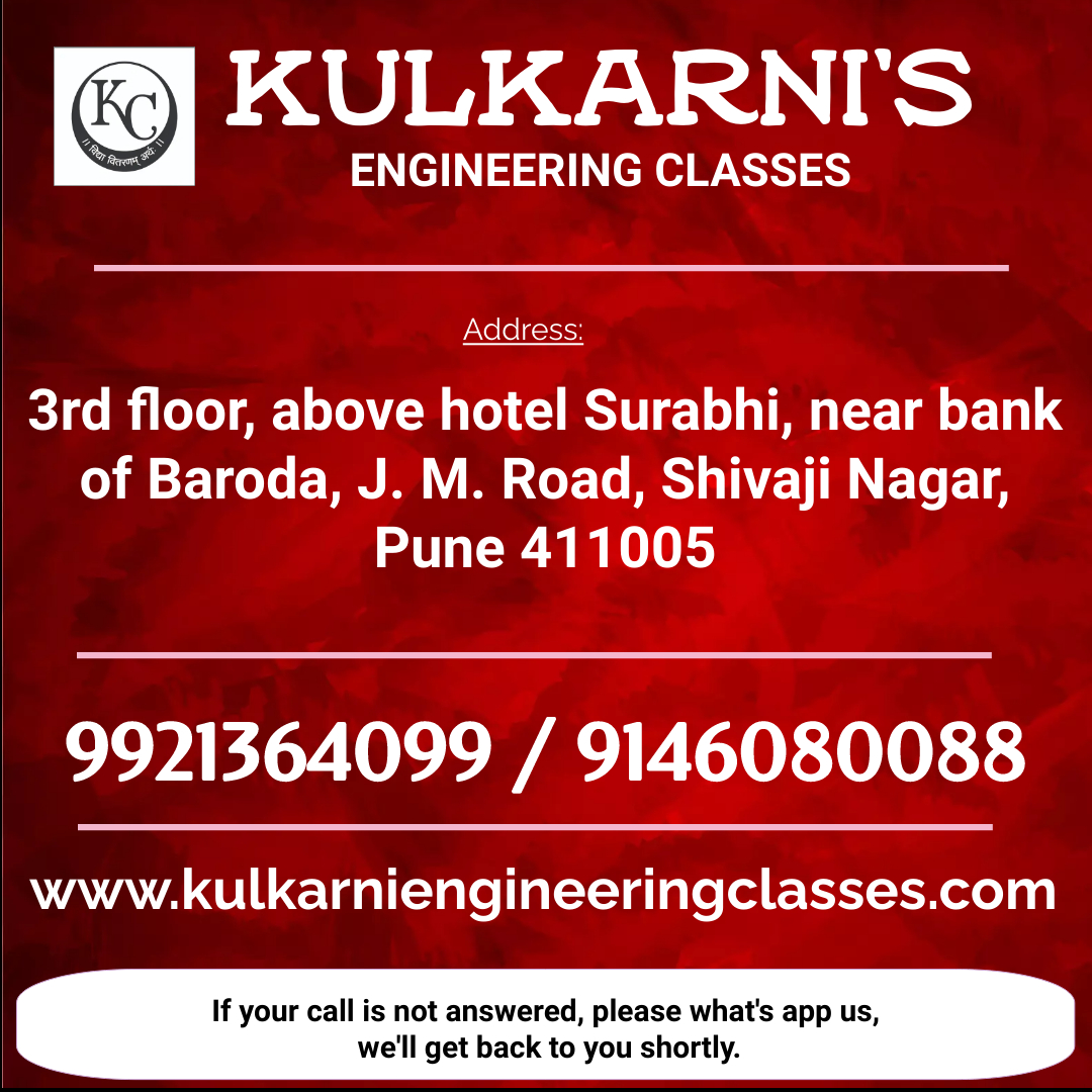 Best Engineering Classes in Pune for Engineering Maths, Mechanics! KULKARNI'S Engineering classes one of the best student friendly engineering classes in Pune. We're glad to glad to announce NEW BATCHES for Engineering Maths-2 & Engineering Mechanics. For more details, please call us or visit our institute at Shivaji Nagar, Pune. Also, you can directly what's app us, we'll get back to you shortly after, Message KULKARNI'S CLASSES on WhatsApp. https://wa.me/message/VMCB4XBN2N4JC1